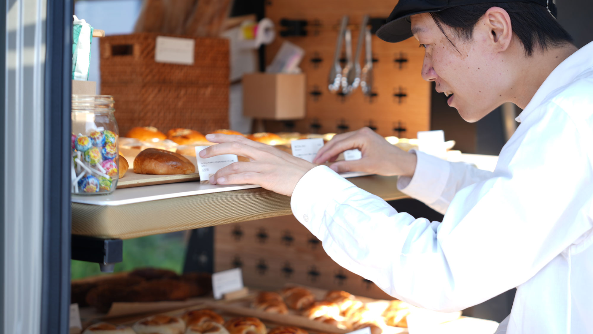 また、移動販売やマルシェの出店車両でも、ディスプレイ用什器として活躍。