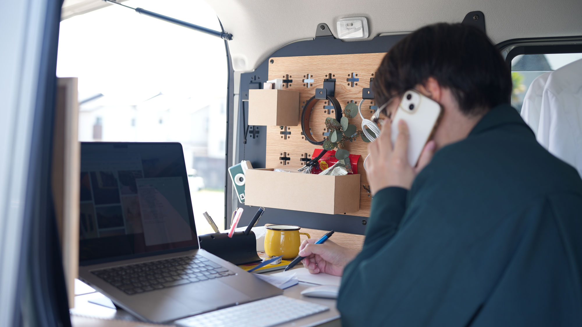限られた車内を効率よく使い、心地よい空間に変えることで、仕事そのものが少し楽しくなります。