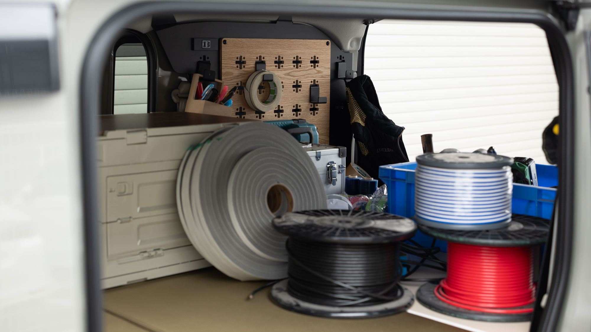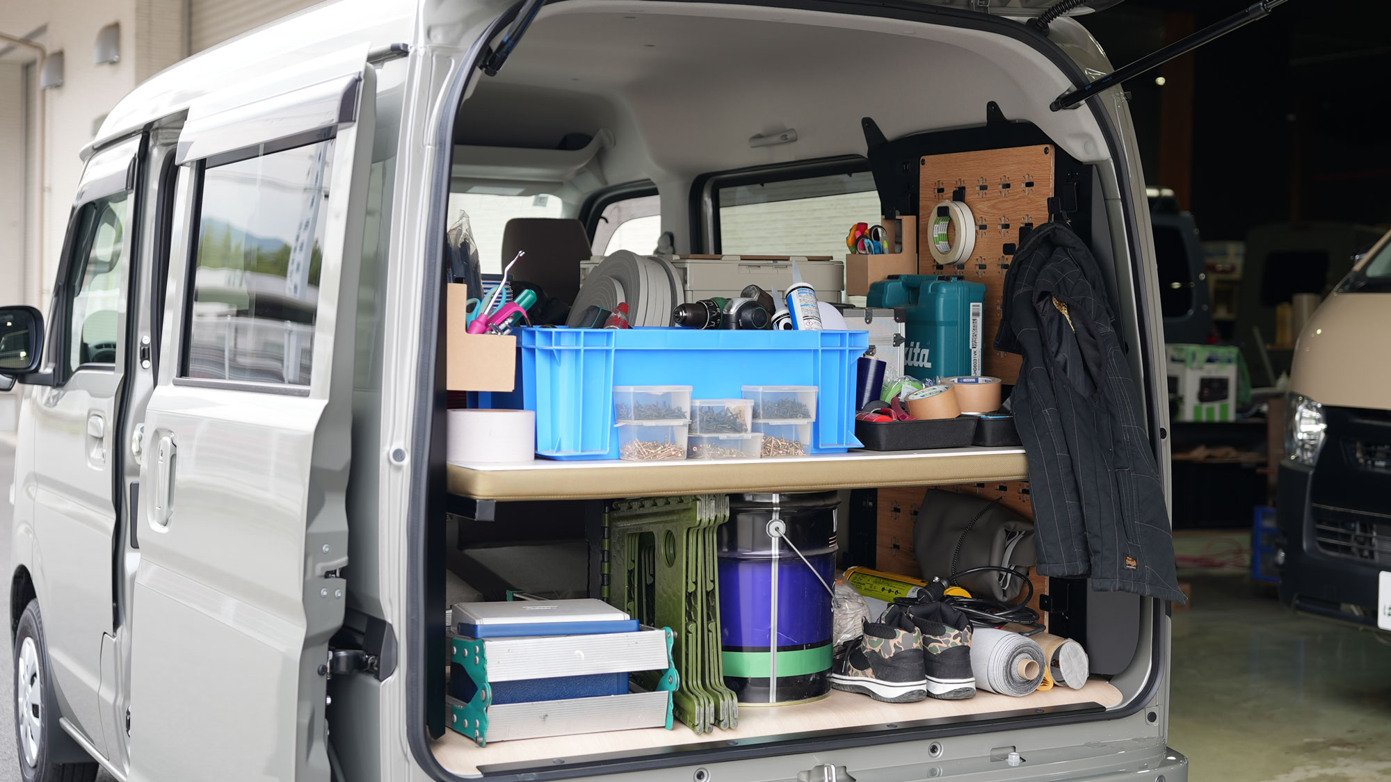 軽バンの荷室を有効に使い、効率と安心感を両立。