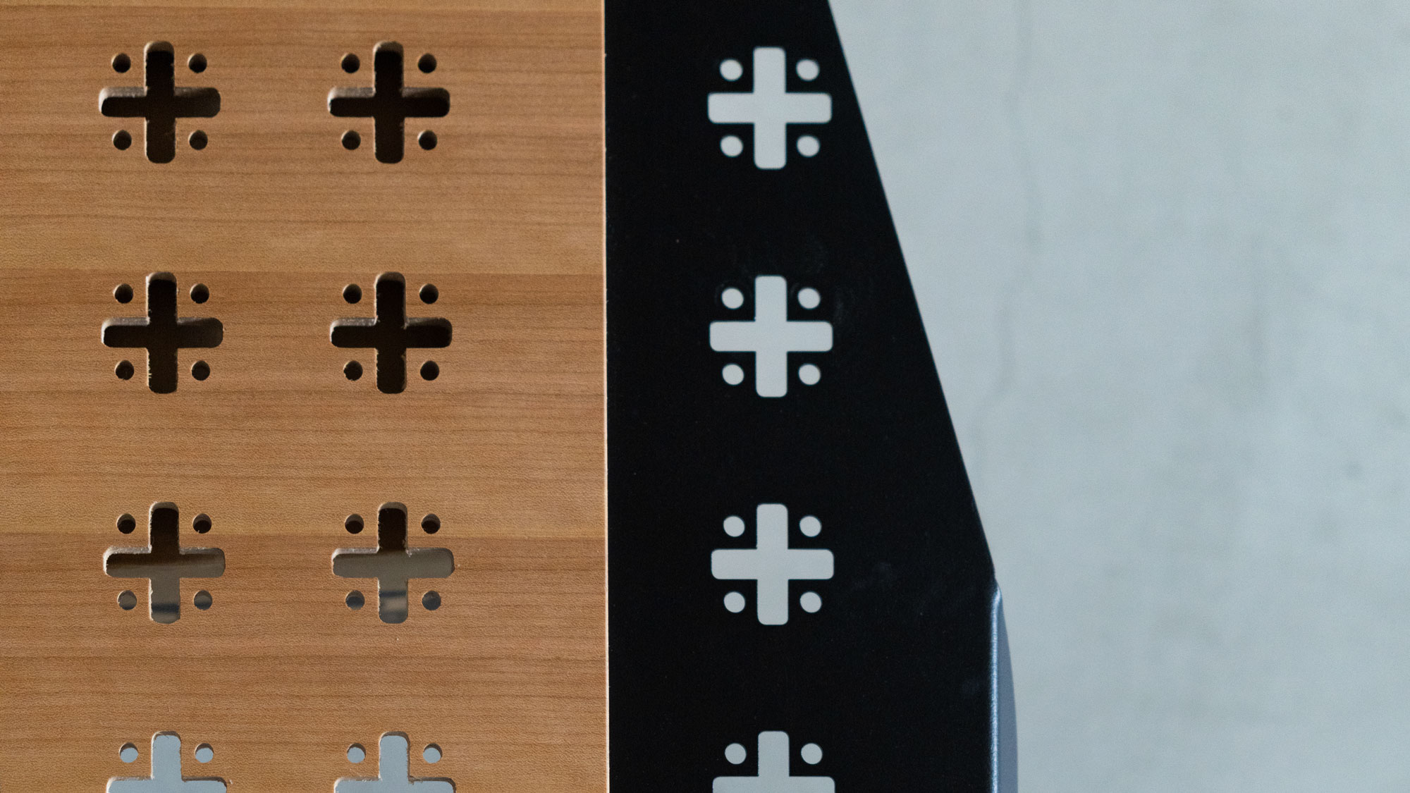 タックボードの有孔デザインは、工具の収納に非常に適しています。