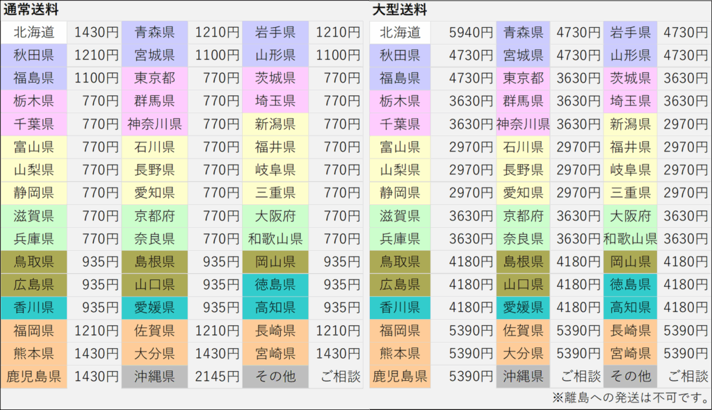 送料は税込み送料が下の表をもとに自動加算されます。 |